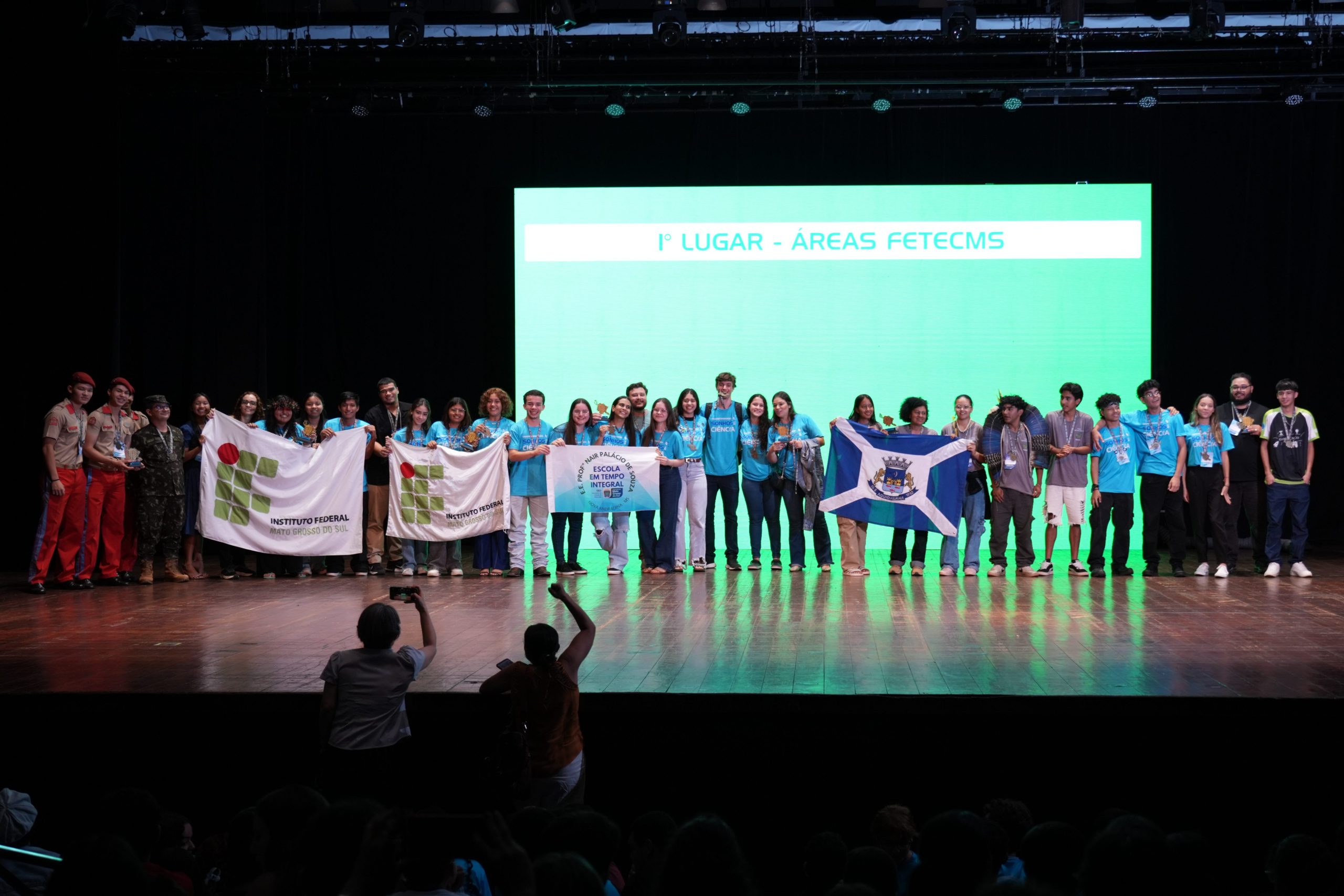 Após quatro dias de intensa programação dedicada à ciência, tecnologia e inovação, uma grande cerimônia, realizada na noite desta quarta-feira (22), marcou o encerramento e a premiação da Feira de Tecnologias, Engenharias e Ciências de Mato Grosso do Sul (FETECMS). Promovido pela Universidade Federal de Mato Grosso do Sul (UFMS), com apoio do Governo do Estado, por meio da Fundação de Apoio ao Desenvolvimento do Ensino, Ciência e Tecnologia (Fundect), o evento reuniu, entre os dias 19 e 22 de outubro, em Campo Grande, centenas de projetos científicos desenvolvidos por estudantes da educação básica de todo o Mato Grosso do Sul e de outros estados do país.